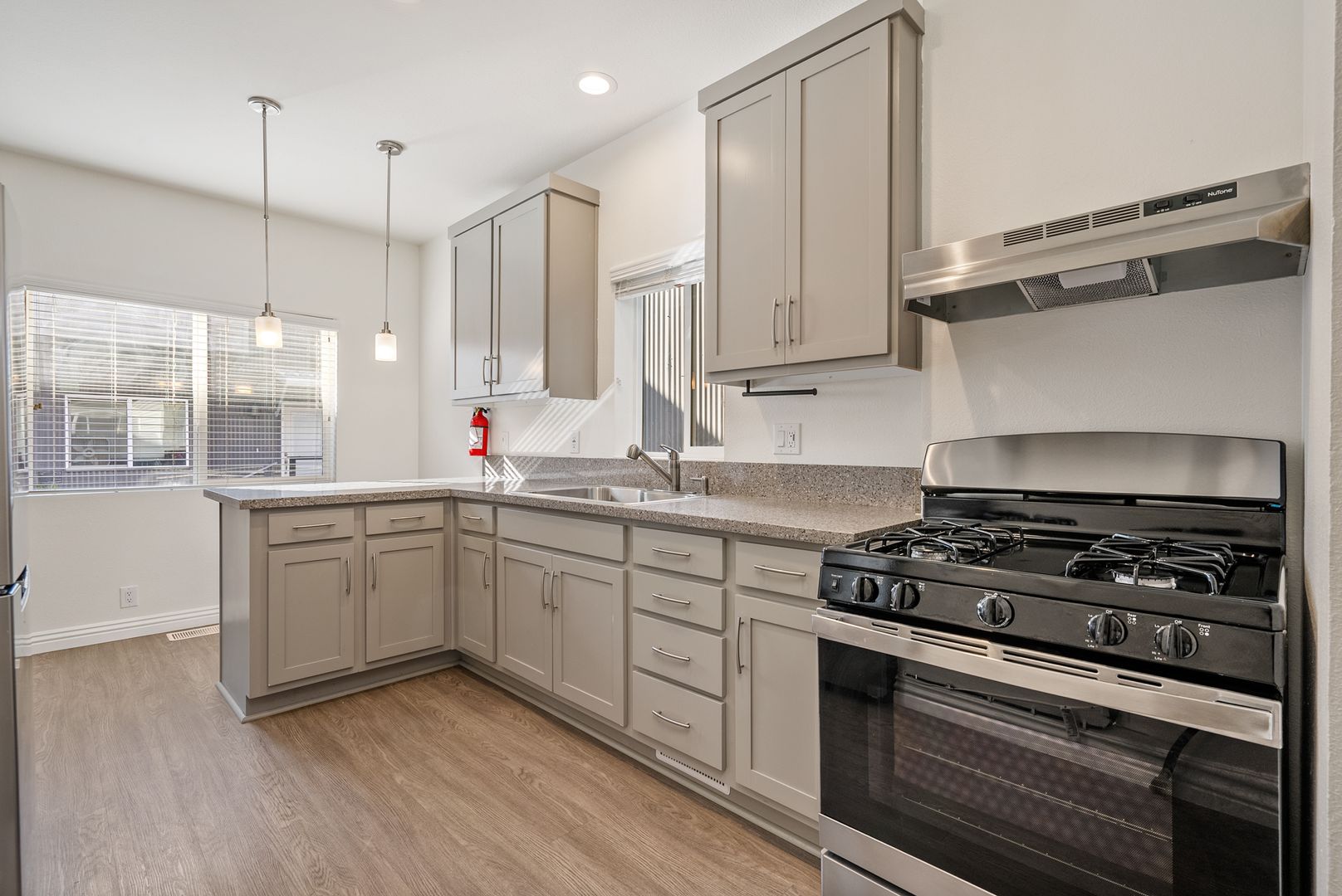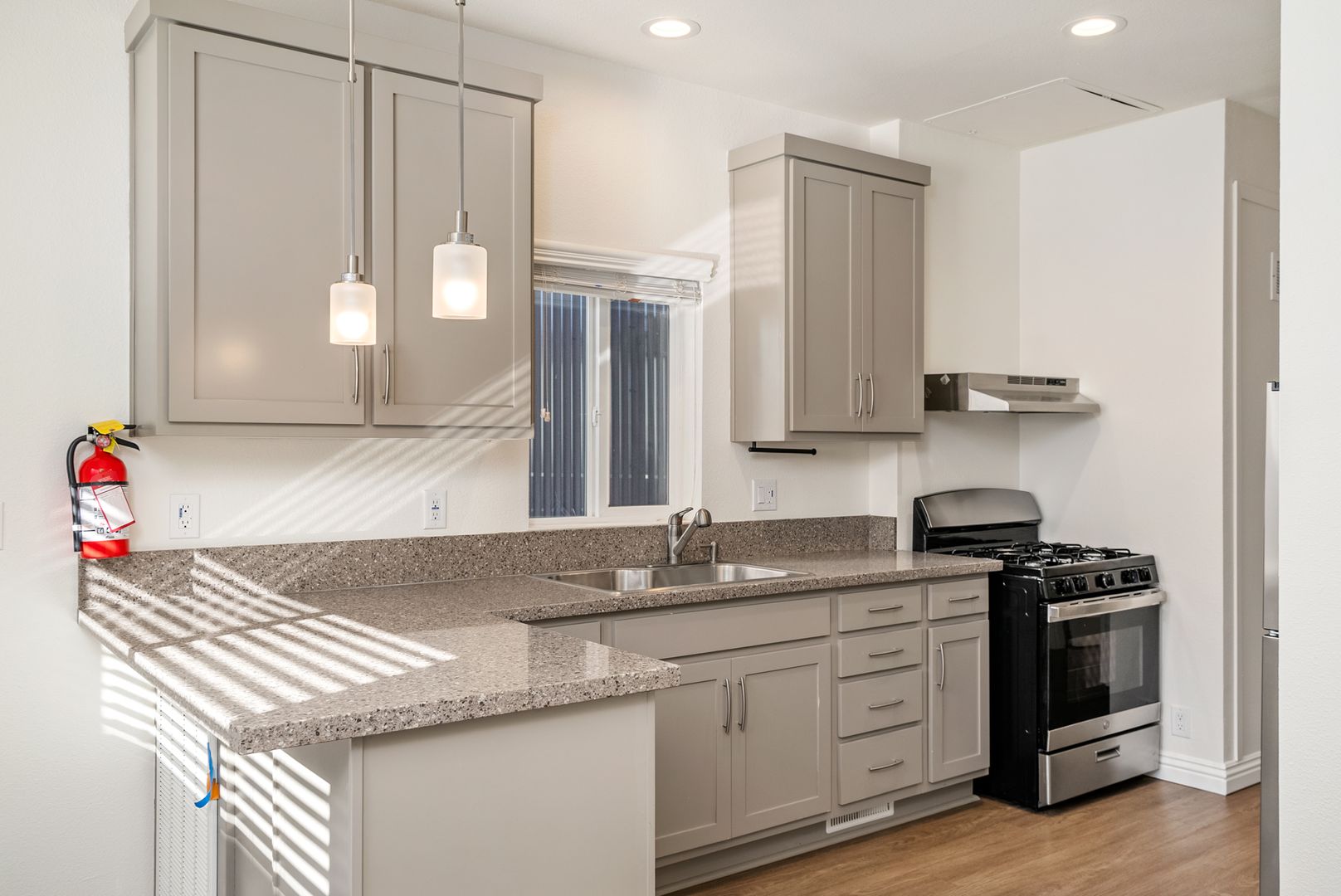 This light-filled two bedroom unit in a gated community includes a beautifully updated kitchen with refrigerator, stove/range. Unit also includes AC, vinyl floors and in-unit laundry. This is a downstairs apartment.